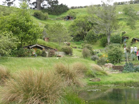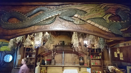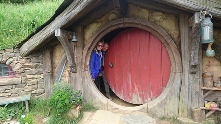 The drive out to Hobbiton was easy and took about an hour. We arrived about 10.30 and the earliest tour available was midday. A couple of coffees and a read on our Kindles made that time pass quickly enough. It was easy to see why Peter Jackson had decided this farm was the ideal location for the filming and later the rebuild. Normally a film construction is dismantled and that's the end of it. However, by the time The Hobbit films were recorded after Lord of the Rings, the following was huge and it was decided that for The Hobbit the site would be constructed to last between fifty and one hundred years. Candice was our guide and she was really good. The attention to detail in the buildings and layout was very high and you could almost believe Hobbiton was real. After the tour there was a choice of drinks in The Green Dragon to round things off. For the film, The Green Dragon interior was set up elsewhere but now it has a real interior and as everywhere, attention to detail was quite something.