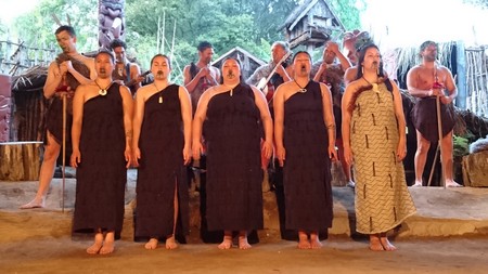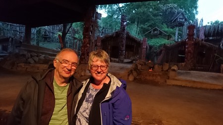 In the evening we went to the Mitai Maori Village where the Maori culture was explained both through a welcome talk and a show. We had met Mathew, an American travelling alone, and chatted to him on the coach out to the village. He was "elected" as one of two chiefs of the visiting tribes (the audience from various countries) and Gill offered to video that for him. Later he was told he could invite four people to the front row of the show so he asked us to join him giving us an excellent view.