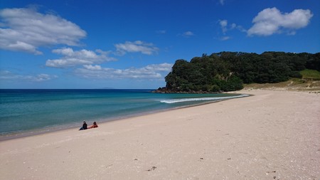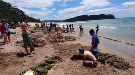 We first went to Hot Water Beach where in theory you can dig down into the sand and the water will be hot so that you can sit in it or dip your toes in. What we found was that you can only dig in a very specific area, that was already pretty crowded, and that it was pot luck if you dug in the right spot. After an unsuccessful attempt we decided to leave it to the younger more energetic beachgoers.