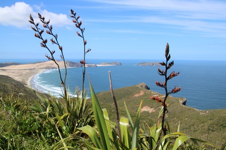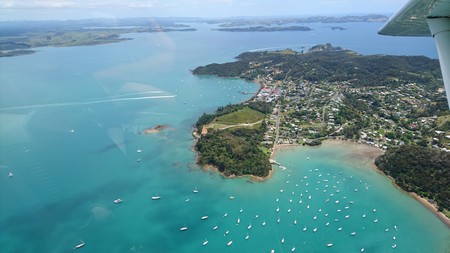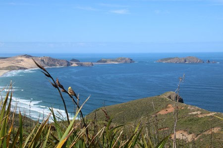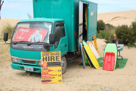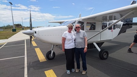 Yogi had recommended the Cape Reinga Scenic Tours run by Salt Air. We were picked up at 7.35. Two others were picked up on the way and two more people joined the group at the airport. The flight north towards Cape Reinga took about 45 minutes in a Gippspeed Aeronautical GA8 Airvan. A people carrier had been left at the landng strip and our pilot Daniel then drove us to Cape Reinga. After that we were driven to sand dunes at Te Paki where some people were sandboarding. We then went on to Tapotupotu Bay for coffee before returning to the flight. This time the route followed the east coast and took about an hour. The tour may have seem expensive at first, when you took in the pick up and return, a good flight and a couple of hours on the ground in the north, it was in fact good value. In addition the weather could not have been better with the sun shining all day.
