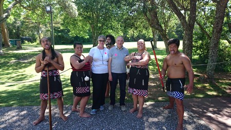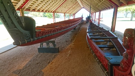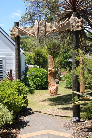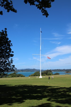 Pretty much as soon as we got back to the hotel we headed off to the Waitangi Treaty Grounds where the first priority was lunch at the Whare Waka Cafe! At 3 pm we were at The Carved Meeting House for a Maori presention. This was included in the entry and proved to be as good if not better than the Mitai presentation at Rotarua, albeit shorter. We also visited the Treaty House and walked down to the war canoes passing the flagstaff that marks the spot where the treaty was signed.