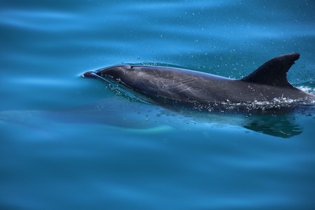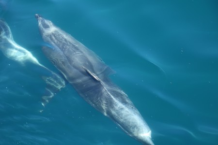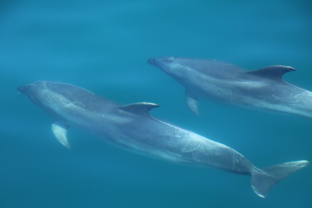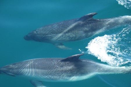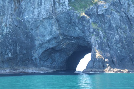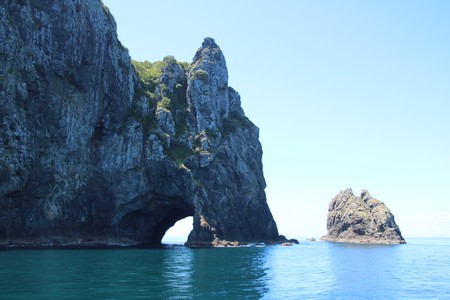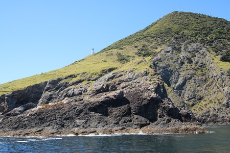 The boat first crossed to Russell to pick up more passengers before we started the journey out to Motukokako (Hole in the Rock). On the way between the islands of Moturoa and Motuarohia lots of bottle nosed dolphins swam alongside the boat for quite a while enabling Gill to get some good pictures. After viewing the hole in the rock for some time, we were surprised to be taken through it as it did not seem wide enough for the boat. Fortunately the sea today was calm enough to enable this. On the way back we saw the much smaller Common Dolphins and were told that don't often come into land as close as this so we were fortunate.