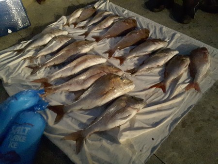 We dined in again as the view is superb and last night's food was also very good. After dinner Yogi returned from his fishing trip with his brother and they had an almost unbelievable catch. It was all snapper but the quantity was more than they had ever caught before.