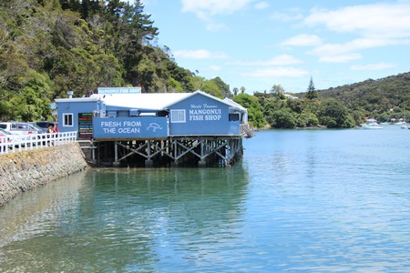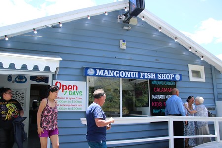 We were going to visit the factory that made the heat stand that Glennis and Yogi gave us but found it only opened Monday to Friday. As today's journey was short we left the main road and followed the Tourist Drive signs going via Whangaroa Bay for coffee. After rejoining the main road we went on to Mangonui where we went to the "World Famous Fish and Chip Shop" that had been recommended by Glennis. We had a very enjoyable fish and chip lunch for a very reasonable price.