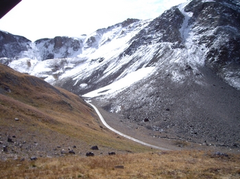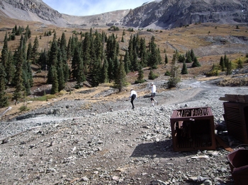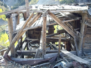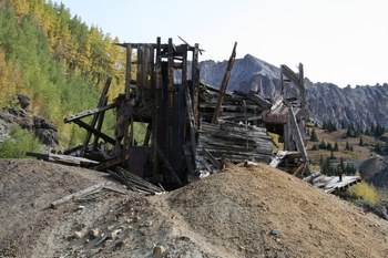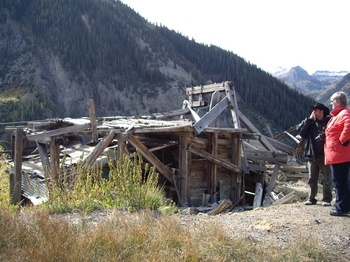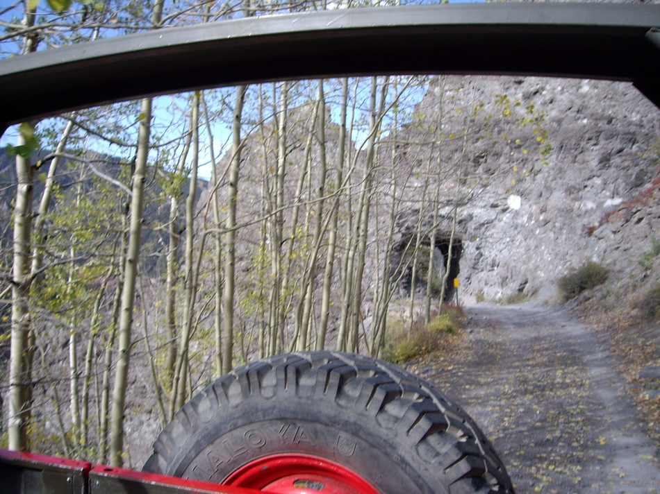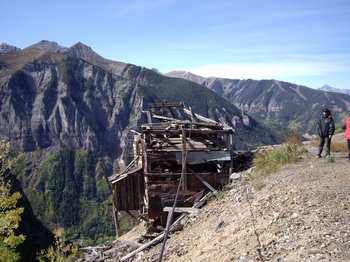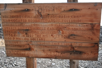 The first part of the journey was to Tomboy, which was a mining town. The mine owners did not allow the "ladies" from Telluride on site and this archway was the nearest they could go. It seems the enterprising "ladies" in Telluride were not to be beaten and they dragged crates of beer here to sell along with various other services! |