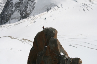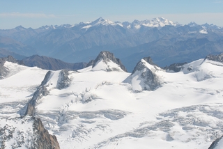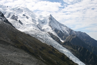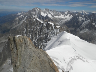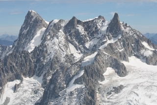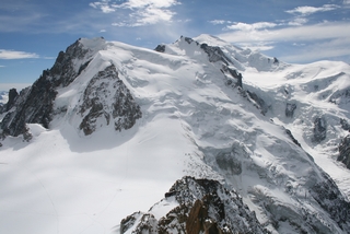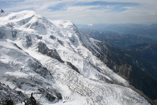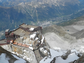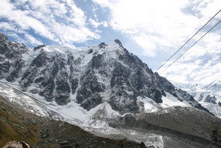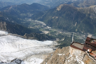 On our last day we drove to Chamonix to take John on the Aiguille du Midi Cable Car. We were so lucky with the weather, the sun shone and even at 1913 metres, a light fleece was sufficient. This gave us excellent views across to Mont Blanc, wonderful for John who had not been here before. |