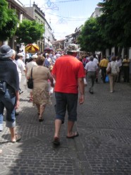 The guide books warn that Las Palmas is not a city for strolling around, it is too spread out. Typically we decided to go by car to give us flexibility and having parked under the Museo Elder, we left the car all day and used buses! First we took the bus to Triana which is one of the older areas of the city and walked along Calle Mayor de Triana, the main shopping street. There were many examples of the typical wooden balconies to be seen.