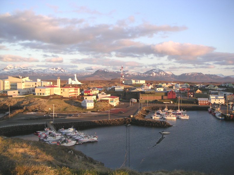 After lunch we headed off at a leisurely pace to Stykkisholmur along Routes 1, 54, 56 and 58. The pictures below show the wonderful scenery en route. Our hotel for the night was the Hotel Breidafjordur which had been booked from the internet. As you will see from the picture we took before leaving the next morning, it is not the most attractive of buildings but it was much nicer inside and I would happily recommend it to anyone. After unpacking, we went for a stroll around this absolutely lovely little town. The Fimm Fiskar (Five Fishes) restaurant looked good and was clearly patronised by local people as well, always a good sign, and we were not disappointed. Then we drove around to see a bit more of the town and took some evening photos in the lovely light you get in Iceland.