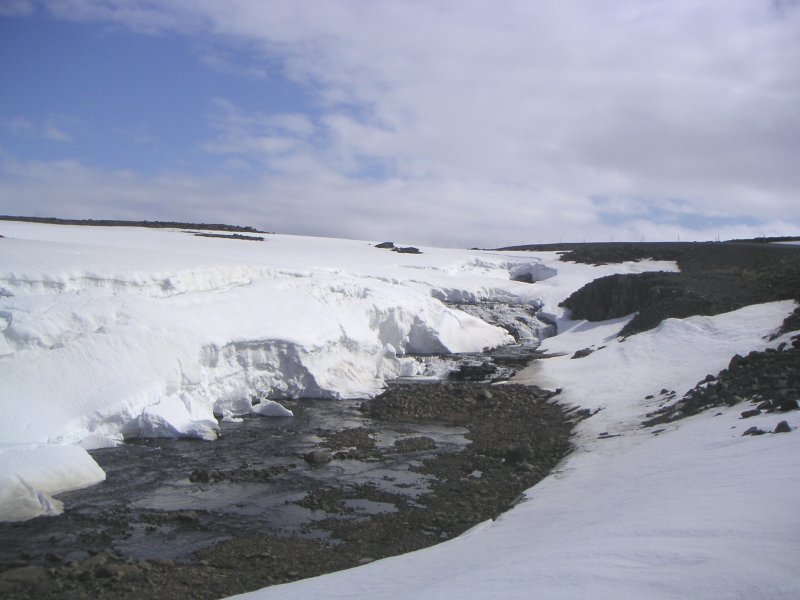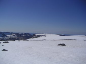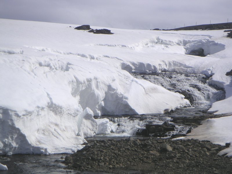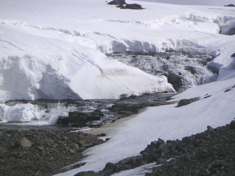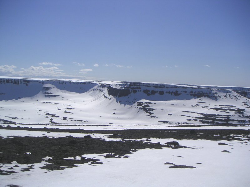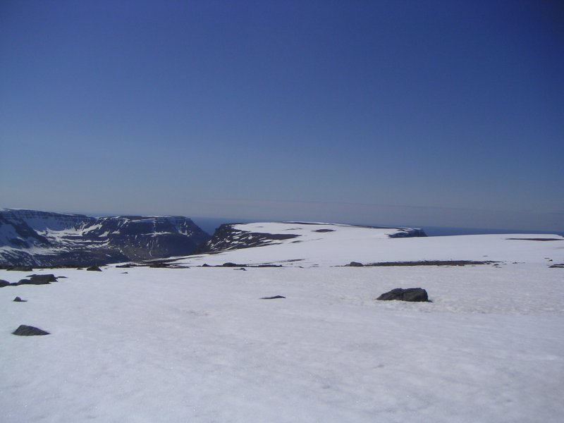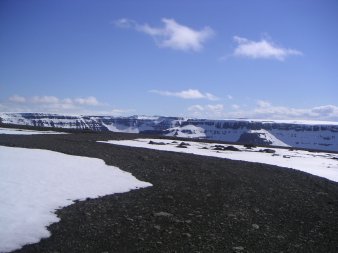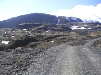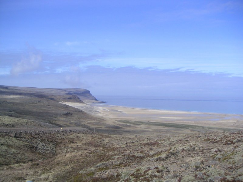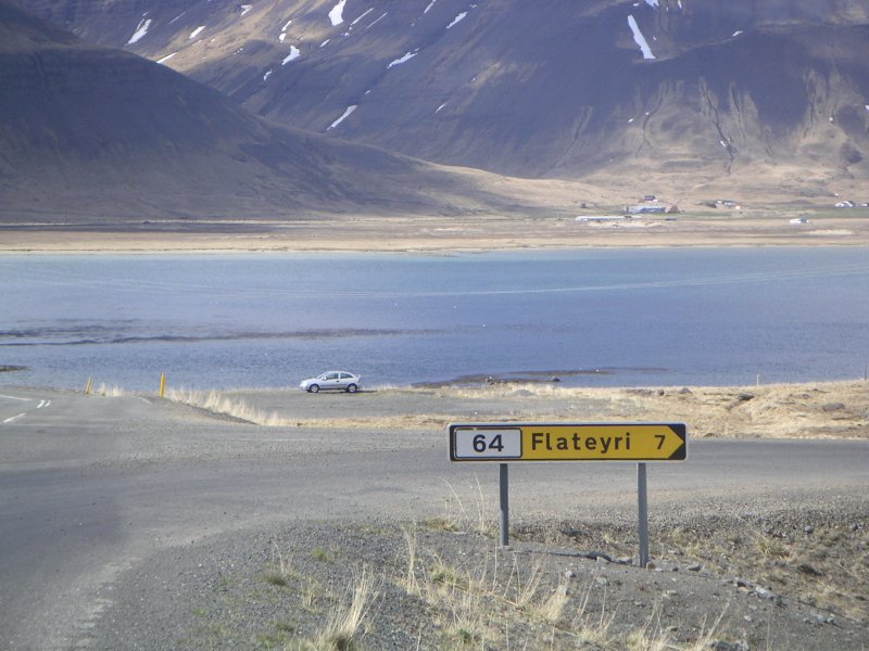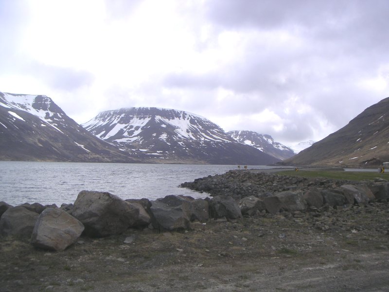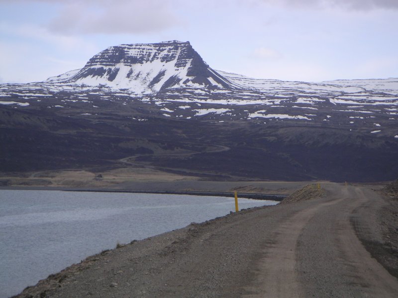 We followed Route 61 from Isafjordur which follows the northern coast of the Western Fjords until it crosses the Steingrimsfjardarheidi (heidi being a pass) to Holmavik where we planned to stay overnight. This is one of those roads where you travel ten miles or so down one side of a fjord and ten miles back up the other side just to get one mile forward but what wonderful scenery. I mentioned the late melt earlier and that was even more evident on the Steingrimsfjardarheidi until we started dropping down the other side.