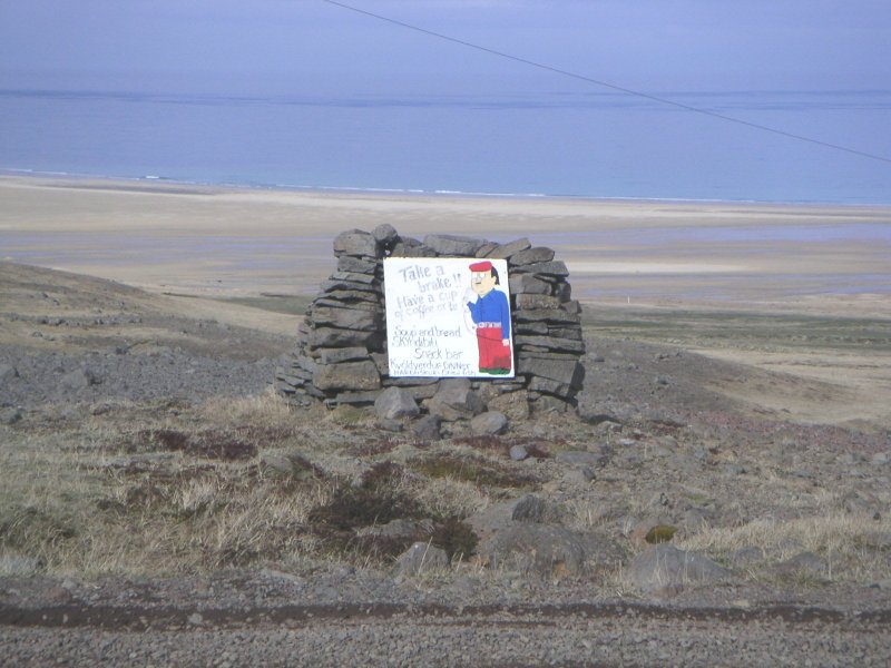 Kleifabui on KleifaheidiThis was "erected" by the guys who built the road. Typical builders' sense of humour. |