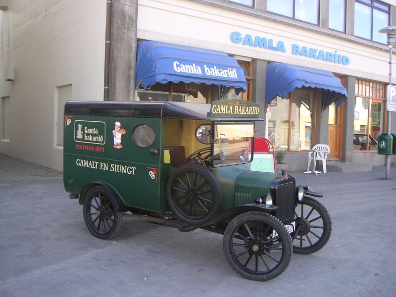 If you were not already aware, cars are expensive in Iceland. On our stroll around the shops in the morning, we realised just how long some people will try to make them last, the baker's van is a Model T! The goodies in the baker's shop were rather tempting.