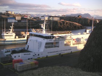 Today's destination was Stykkisholmur which is only a couple of hours from Reykjavik so we spent some time catching up on news and getting some supplies. In the Kringlan Shopping Centre we found Debenhams and other such well known UK shops.