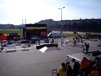 After the conference, one last day in Vilnius. This park was for teenagers. There was skateboarding, mountain biking, music and organised competitions. Plenty of free good fun. |