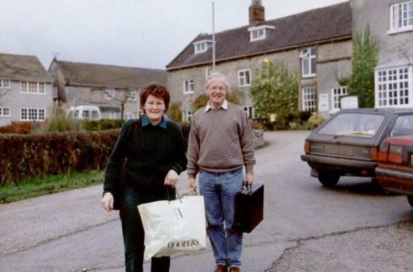 Typical Gilbert photo, David with work in case, Val with shopping in bag!