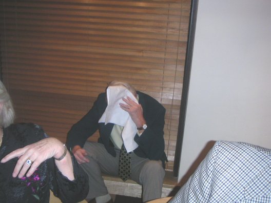 As if that were not enough for Gareth, Gill told Angela about the side effects of the Rosemary Conley diet. After being on it for several weeks Gill had gone swimming. Gareth just heard the bit about "after breast stroking, my knees went weak". Poor man nearly choked.